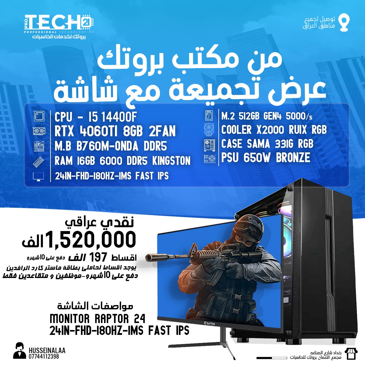- كارت الشاشة (GPU): NVIDIA RTX 4060TI 8GB (2 FAN)