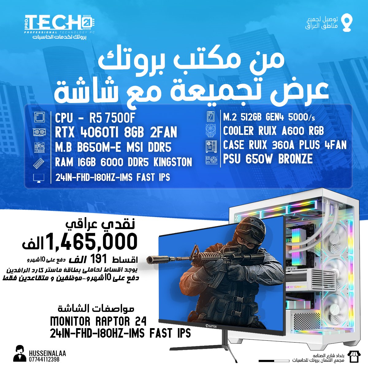 - كارت الشاشة (GPU): NVIDIA RTX 4060TI 8GB (2 FAN)