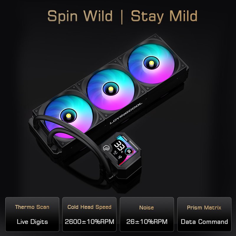 LOVINGCOOL 360mm ARGB Liquid Cooler BIG DIY Video Display GIF black